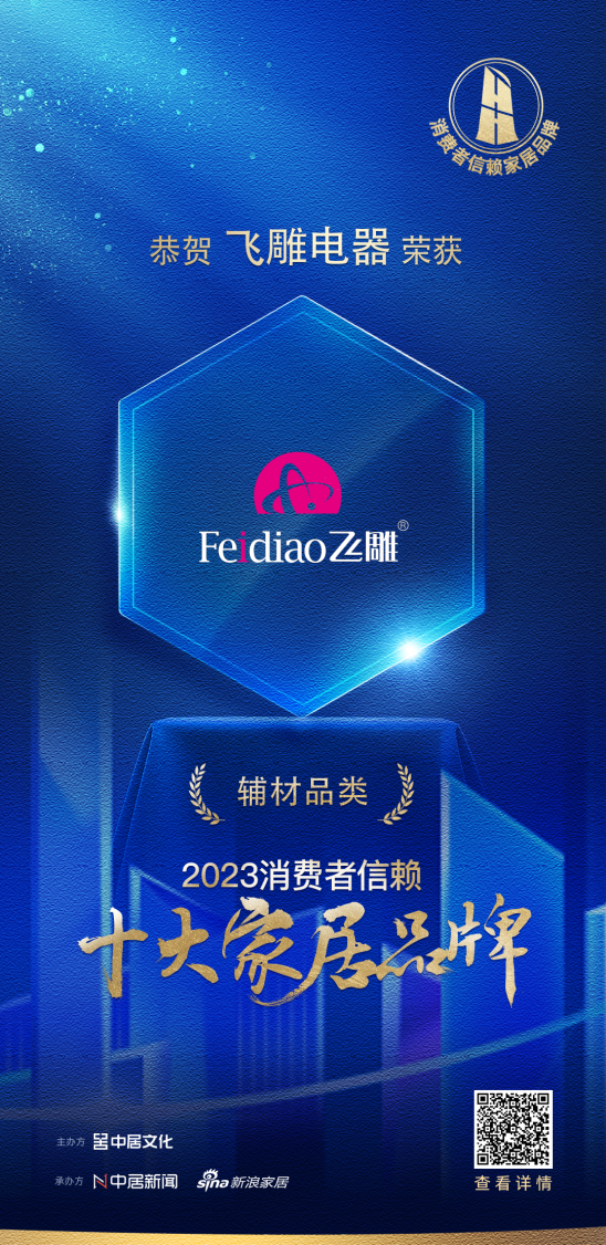 近日,「2023消費(fèi)者信賴十大家居品牌」榜單隆重揭曉,歷經(jīng)網(wǎng)絡(luò)票選、專業(yè)評審等眾多環(huán)節(jié)的投票評比,飛雕電器從眾多參賽品牌中脫穎而出,再次榮登「2023消費(fèi)者信賴十大家居品牌」輔材榜單!